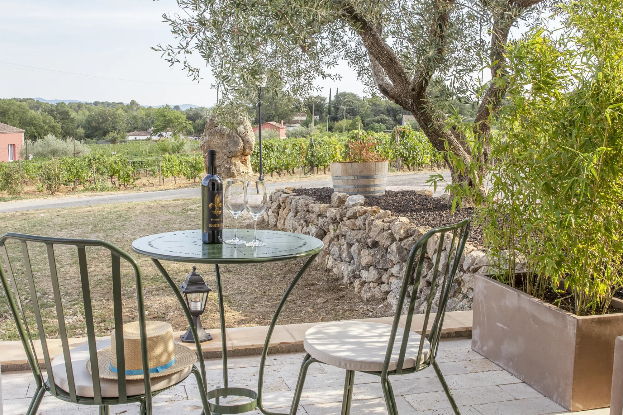 Our Classic Double Room is a Provençal retreat crafted with natural materials, soft textiles and a warm palette that mirrors the surrounding landscape. The room overlooks the vineyard’s lush greenery and invites relaxation from the very first moment. The décor blends rustic charm with modern comfort – from the handmade bathroom tiles to the linen curtains that filter the morning light. Each Classic Double Room shares the same carefully chosen materials yet differs in character and detail.